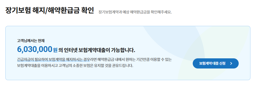 해약환급금이 아깝거나 기존의 보험 혜택을 포기하는 것이 망설여진다면 보험을 해지하는 대시 보험계약대출을 받는 것도 좋은 대안이 될 수 있습니다.
