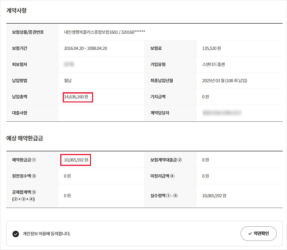 그리고 이 보험을 해지하는 경우 제가 돌려받는 돈은 1,006만원으로 확인됩니다.