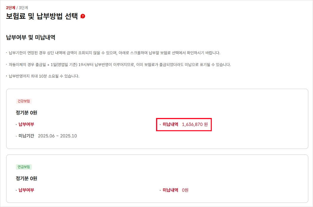 저의 와이프의 경우 그동안 밀린 건강보험료가 무려 163만원이나 되었습니다.