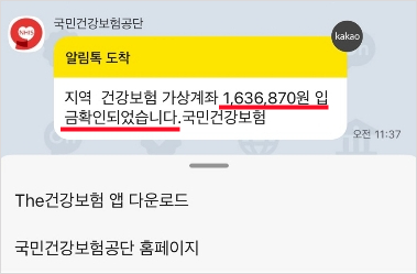 해당 메시지를 받았다면 보험료납부가 완료되었다고 보면 됩니다.