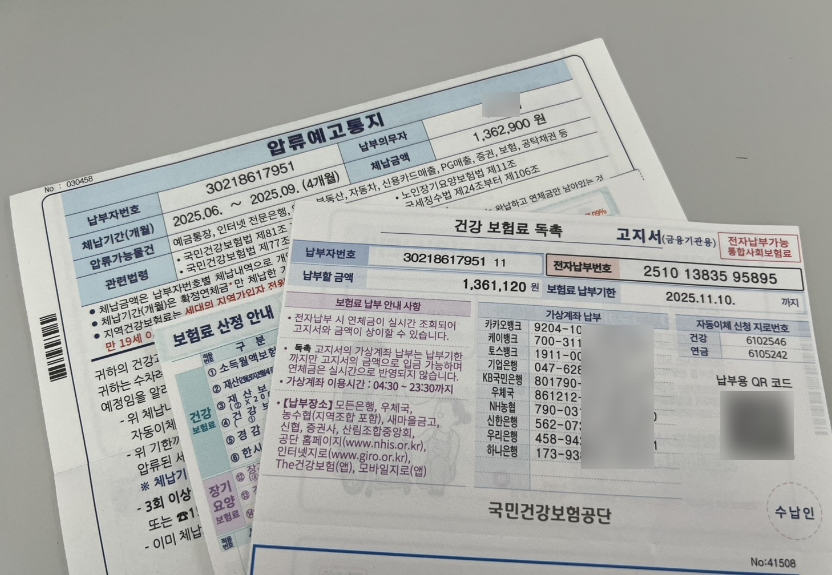 그래서인지 몇달치의 건강보험료가 밀려있었고 독촉 고지서 및 압류예고통지까지 왔더군요.