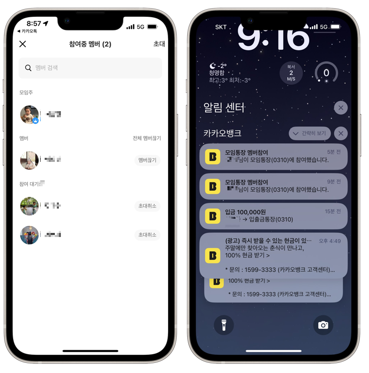 모임통장으로 전환하는 즉시 가입한 멤버들은 이 계좌의 잔액과 내역을 볼 수 있게 됩니다.