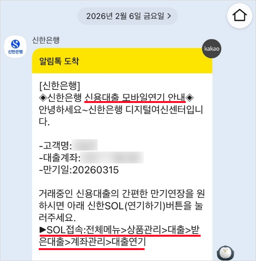 아니나다를까 저에게 마이너스통장 연장 여부에 대해 묻는 카톡 메시지가 왔었고, 저는 간단하게 대출기간을 1년 더 연장했습니다.