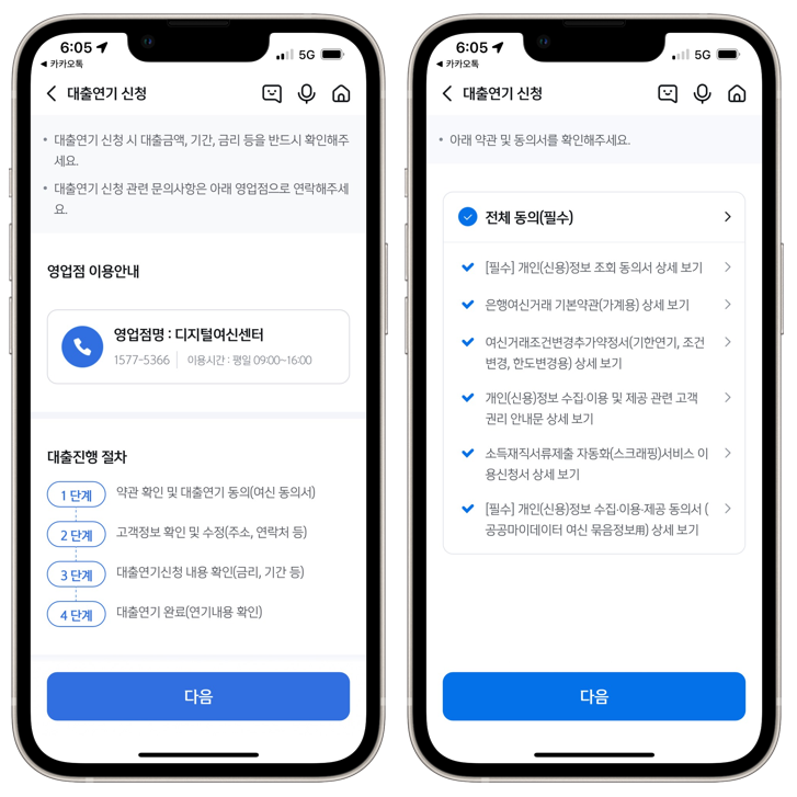 대출금리가 올라서 아쉽긴 하지만 그래도 연장은 해야하니 [다음] 버튼을 누릅니다.