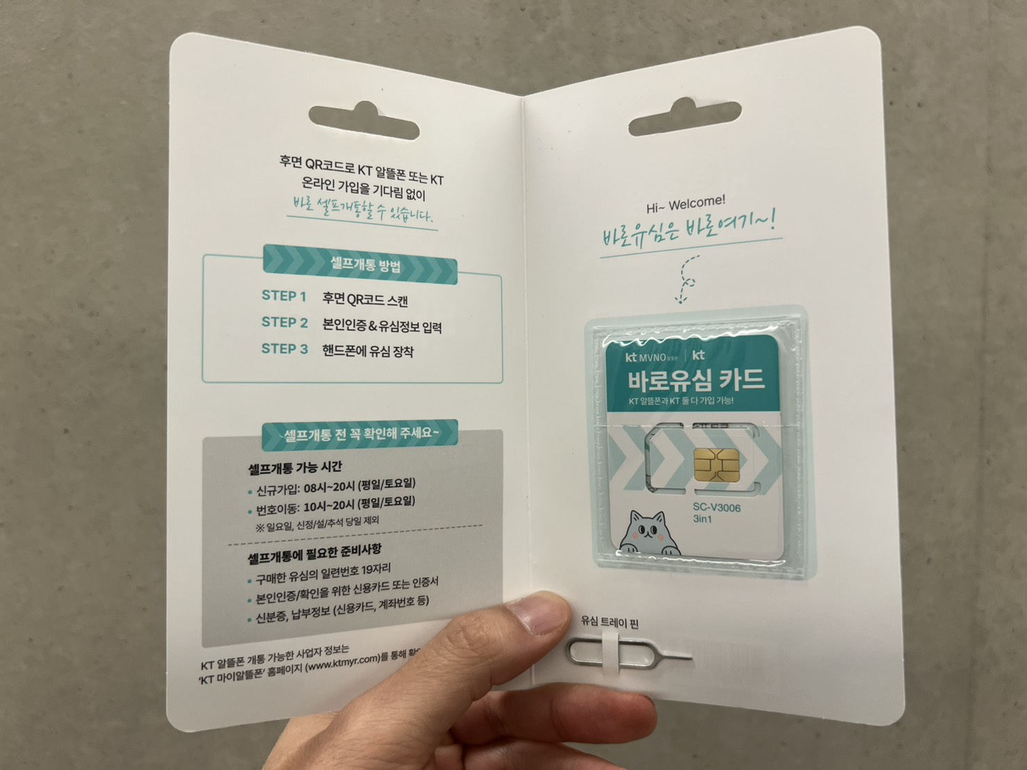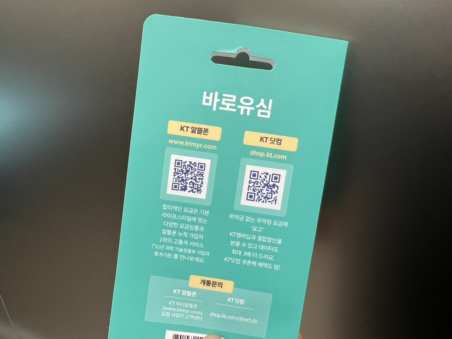 저는 집 근처 편의점에서 아주 간편하게 KT바로유심칩을 구입했습니다.