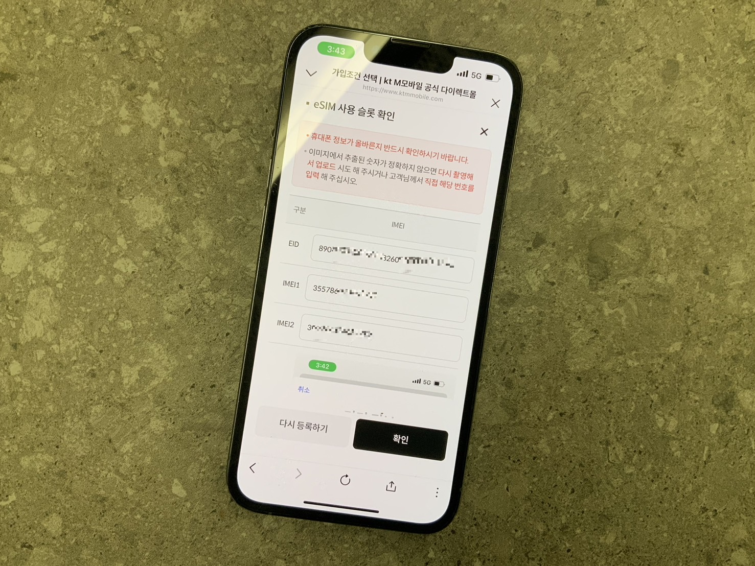 이 때 아까 캡쳐한 기기 정보 화면을 업로드 하고, 요금제 등을 선택하여 가입을 합니다.
