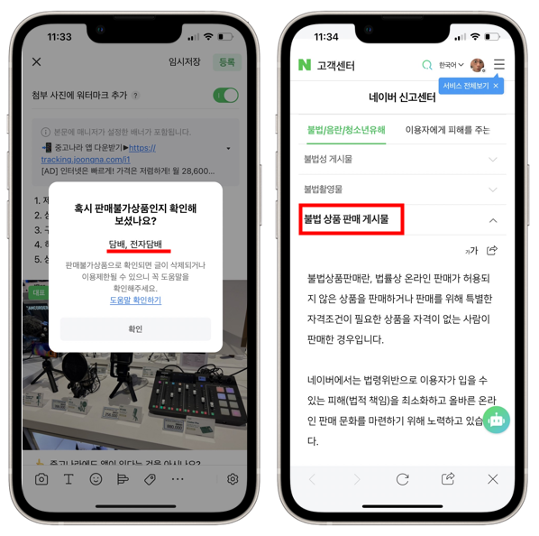 이렇듯 각 품목들은 각각의 팔면 안되는 납득할만한 사유들이 있습니다.