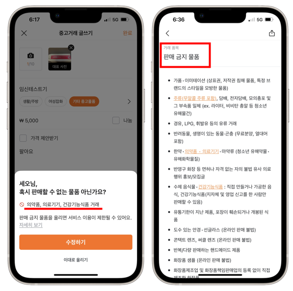 당근마켓의 판매금지 물품 : https://www.daangn.com/wv/faqs/5