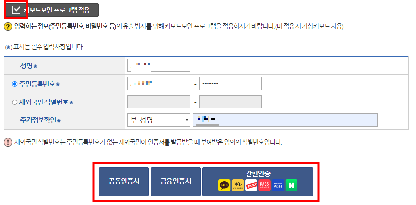 오늘 설명할 것은 온라인으로 발급하는 방법이므로 신분증이나 도장 따위는 필요 없습니다. 대신 공인인증서가 꼭 필요한데, USB나 PC에 저장된 공동인증서가 없어도 네이버, 카카오 등에서 제공하는 간편인증으로도 처리할 수 있습니다.
