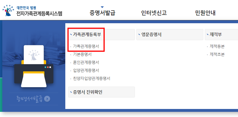 가족관계증명서 인터넷 발급 준비물
