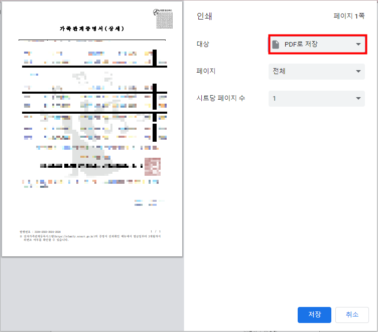 개인적으로는 반드시 프린터기로 종이 출력 하기 전 PDF저장 유형으로 인쇄하는 것을 추천합니다.
