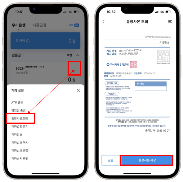 우리은행 모바일 앱으로 간편하게 통장사본 조회하기