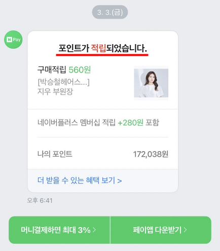 미용실 직원이 "네이버페이로 결제해드릴까요?" 라고 묻는다면 "네"라고 대답하세요. 그냥 현금이나 일반 신용카드로 결제할 수도 있지만 네이버페이로 결제하게 되면 포인트 혜택을 받을 수 있으니 네이버페이로 결제하도록 하는 것을 추천합니다.