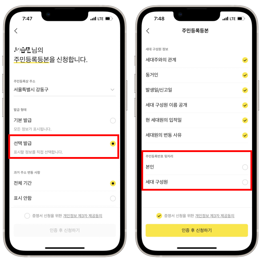 카카오톡으로 순식간에 주민등록등본 발급하기