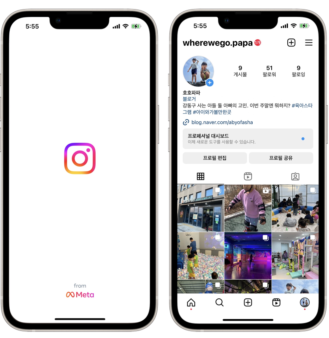 개인적인 일상을 지인들과 공유하는 계정이 하나 있는데 이거는 실제 내가 아는 사람들과 공유하기 위한 용도의 계정이고, 다른 하나는 아이들과 함께 놀러갈만한 정보를 타인에게 공유하는 계정입니다. 시작한지 얼마 되지 않았고 아직 노하우가 없는데다 업로드도 많이 하지 않아서 팔로우는 얼마 없지만 꾸준히 키워볼 생각입니다.