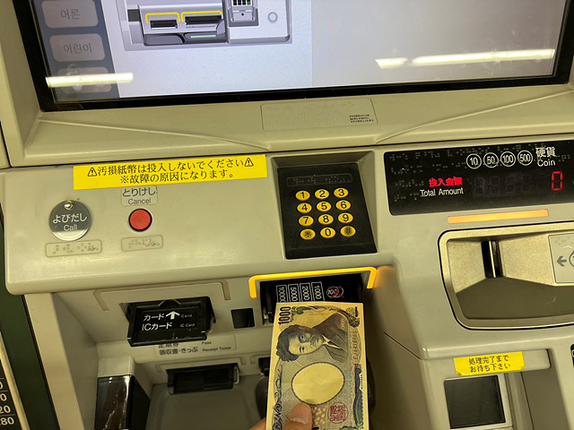 저는 1천엔을 충전하고 지폐를 넣어보았습니다.