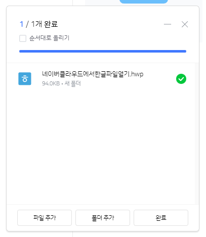 이 한글파일을 수정하려면 일단 네이버 마이박스에 업로드 합니다.