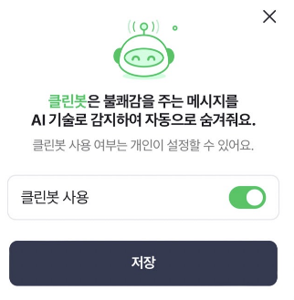 네이버톡에서 채팅방에 들어가면 뉴스댓글에 있는 AI 욕설필터인 클린봇이 적용되어 있는 것을 확인할 수 있습니다.