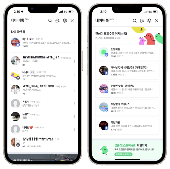 물론 연락처 등을 통해 지인과 소통도 가능하지만 이 네이버톡은 지인 기반이 아닌 비지인 기반에 좀 더 집중을 하고 있습니다. 기존에 네이버 안에서 있던 카페, 스포츠, 연예, 게임 등의 톡 게시판이 네이버톡으로 모이고,동일한 주제에 관심있는 사람들끼리 채팅방을 만들고 참여할 수 있습니다. 카카오톡 보다는 카카오톡 오픈채팅에 더 가까운 서비스입니다.