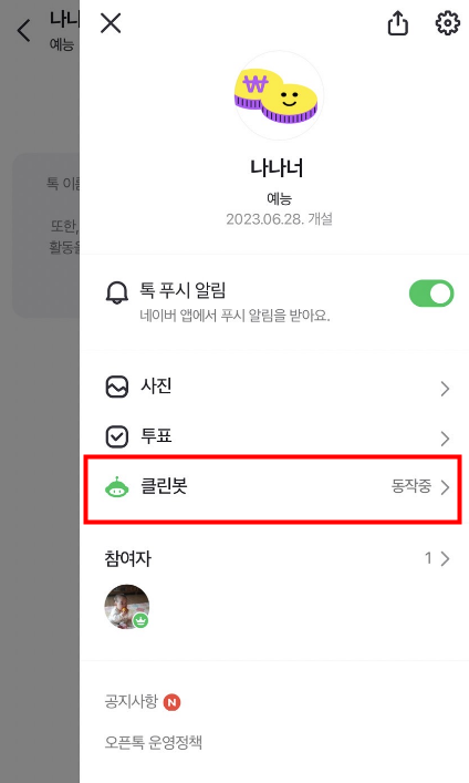 이 클린봇 옵션은 방장의 권한으로 껐다 켤 수 있는데, 지인 기반이 아닌 불특정 다수가 참여할 수 있는 오픈채팅의 특성상 서로간의 분쟁을 최소화 하기 위한 장치로 유용한 것 같습니다.
