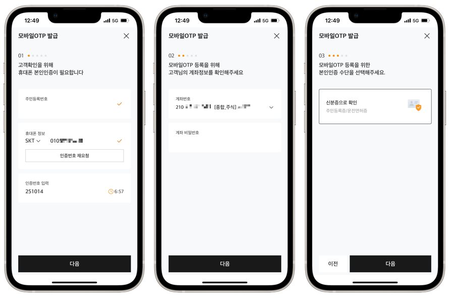 이제 본격적인 모바일OTP 발급 단계로 진입합니다.