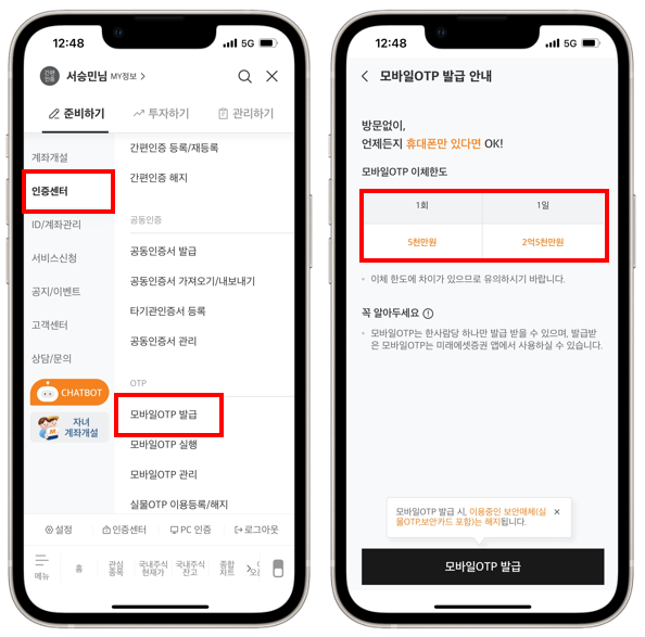 미래에셋증권 모바일OTP 간편하게 발급받기