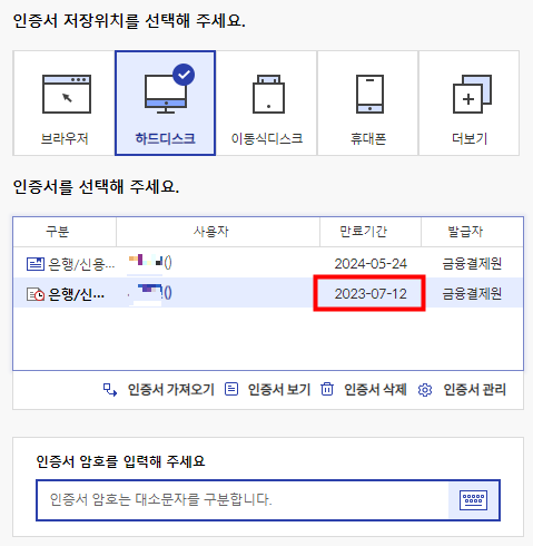 저에게는 바로 내일이 그 공동인증서가 만료되는 날이었습니다.