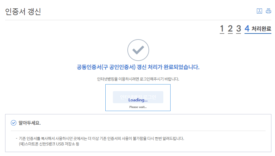 그렇게 OTP 인증까지 마치면 인증서 갱신이 최종적으로 완료됩니다.