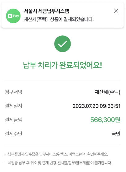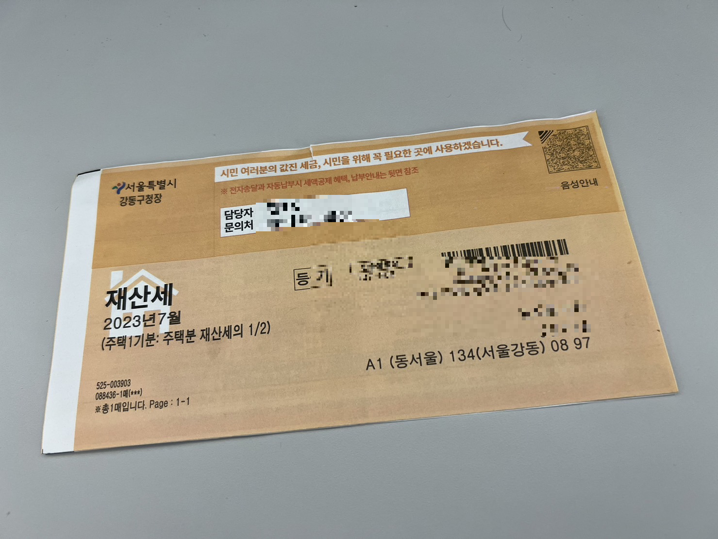 저 역시 와이프와 저 합쳐서 6개의 재산세 고지서를 받게 되었고, 오늘 납부 완료했습니다.