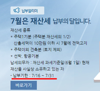 웬만한 재산세 납부 대상자는 7월과 9월 두번 납부한다고 보면 되는데요.