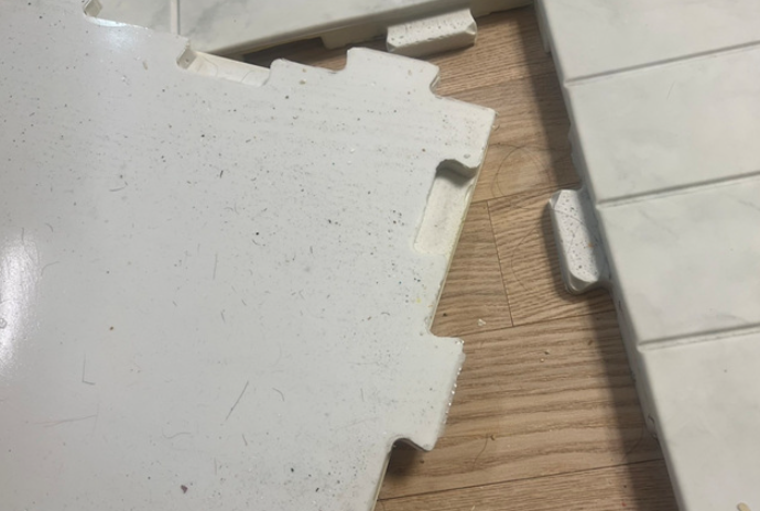 매트가 먼지를 흡수하는 성향이 있어서 바닥 청소를 해도 항상 발바닥에 먼지가 붙는 것 같은 찝찝한 느낌이 듭니다. 일반 바닥과 비교해 청소하는 것도 꽤 힘들구요. 청소기를 밀 때도 일반 바닥을 밀때처럼 잘 밀리지도 않고 걸레질도 꽤 힘듭니다. 무엇보다 청소를 해도 깨끗하게 닦여지지 않은 느낌이라서 찝찝할 때가 많습니다.