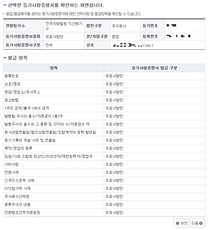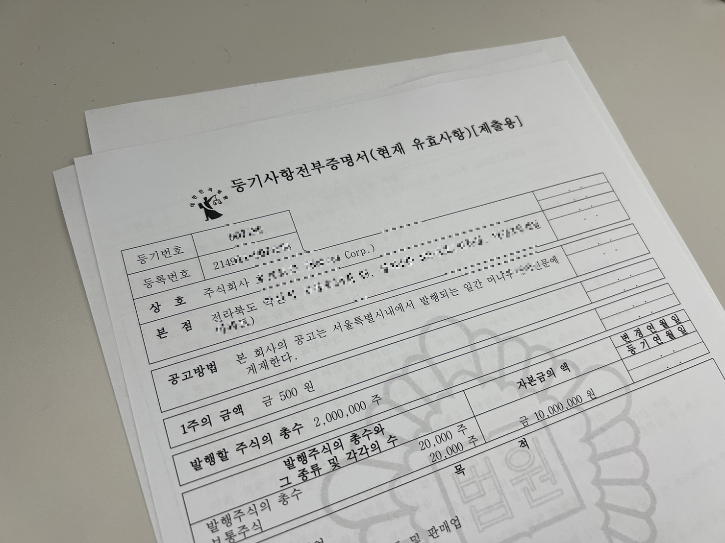 이로서 법인 등기부등본 발급이 완료되었습니다.