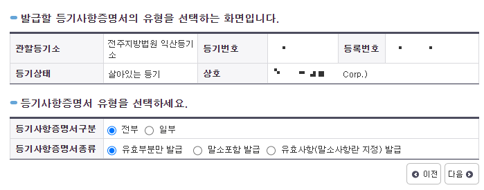 이제 앞서 선택한 등기사항증명서를 확인하는 단계로 진입합니다.