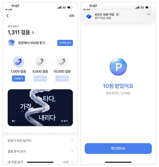 만보기 앱은 내가 걸음을 걷는 수에 비례해 포인트 리워드를 제공해주는 것입니다.