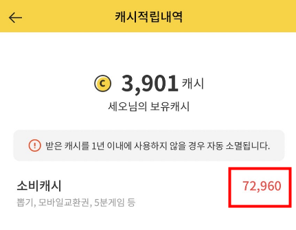 지금까지 제가 받아서 사용한 캐시만 7만2천원이 넘네요
