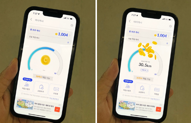 다만 도보로 걸어가야 포인트가 쌓이는 것이 아니라 차로 운전을 할 때 거리에 따라 포인트를 지급하는건데요.