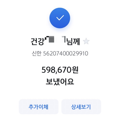자, 이제 여기에 안내된 계좌번호로 납부할 보험료 598,670원을 이체하면 끝납니다.