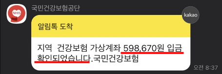 저희 와이프는 직장가입자가 아닌 지역가입자로 되어 있는데요. 그래서 보험료가 좀 비싼데 몇 달치를 밀렸더니 598,670원이나 되네요...