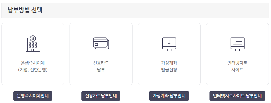 그리고 화면을 조금 더 내리면 어떤 방법으로 납부할 것인지 선택할 수 있는데요.