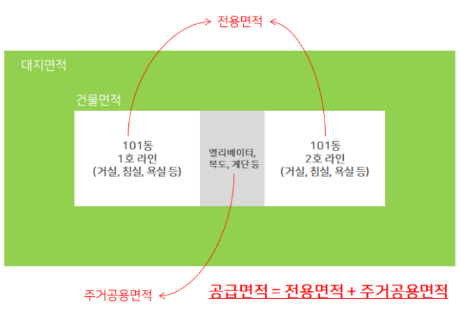 즉, 공급면적은 전용면적 + 주거공용면적 입니다.