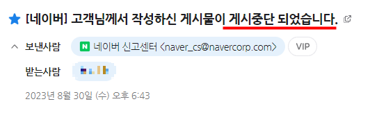 아무튼 저처럼 게시중단을 받은 사람은 이에 납득하지 못하는 경우 제 사례처럼 이의신청을 하셔서 게시글을 복구해보시길 바랍니다.