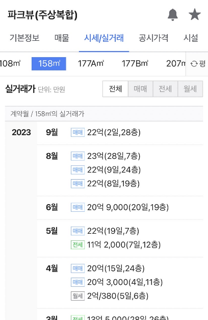 하지만 앞서 언급했듯이 각 매물의 히스토리를 보기 위해서는 호갱노노가 훨씬 낫습니다.