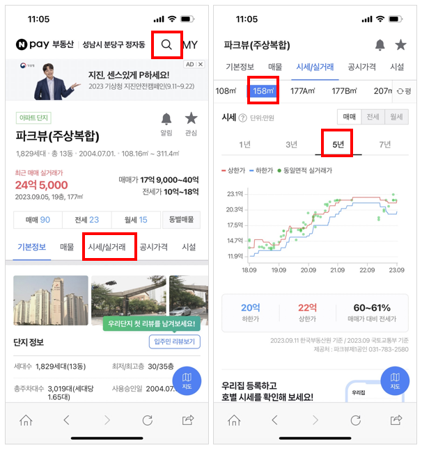 원하는 매물을 검색하고, 시세/실거래 탭을 눌러 확인하기만 하면 끝입니다.
