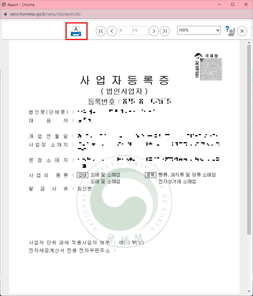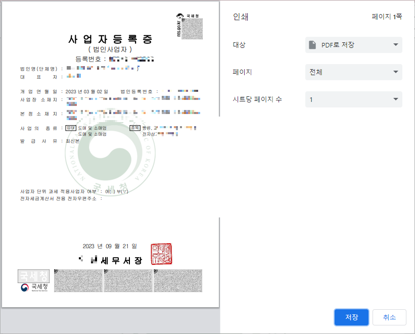 사업자라면 이따금씩 사업 관련한 업무로 인해 사업자등록증을 발급받아 출력해 제출해야 할 때가 종종 있습니다.