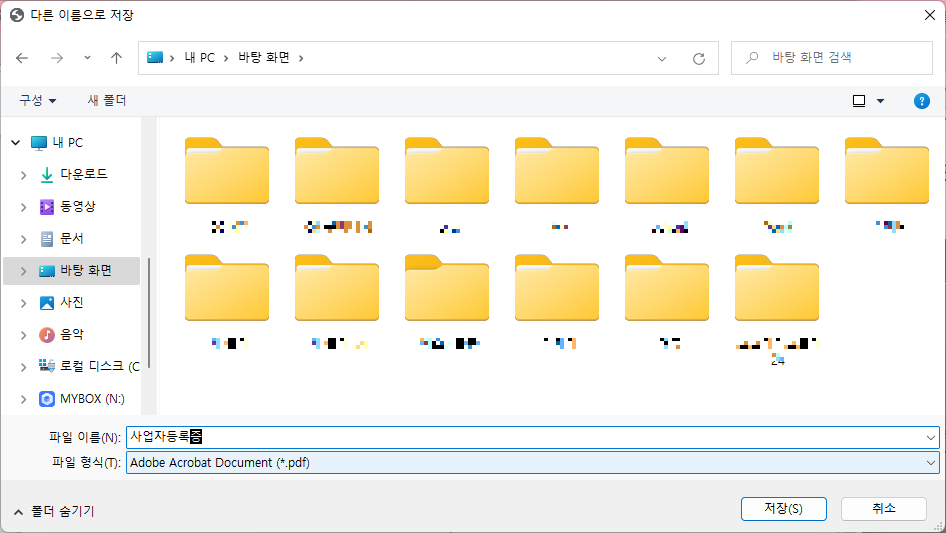그렇게 PDF로 저장을 선택하고 [저장] 버튼을 클릭하면 PDF 파일로 최종 저장이 됩니다.