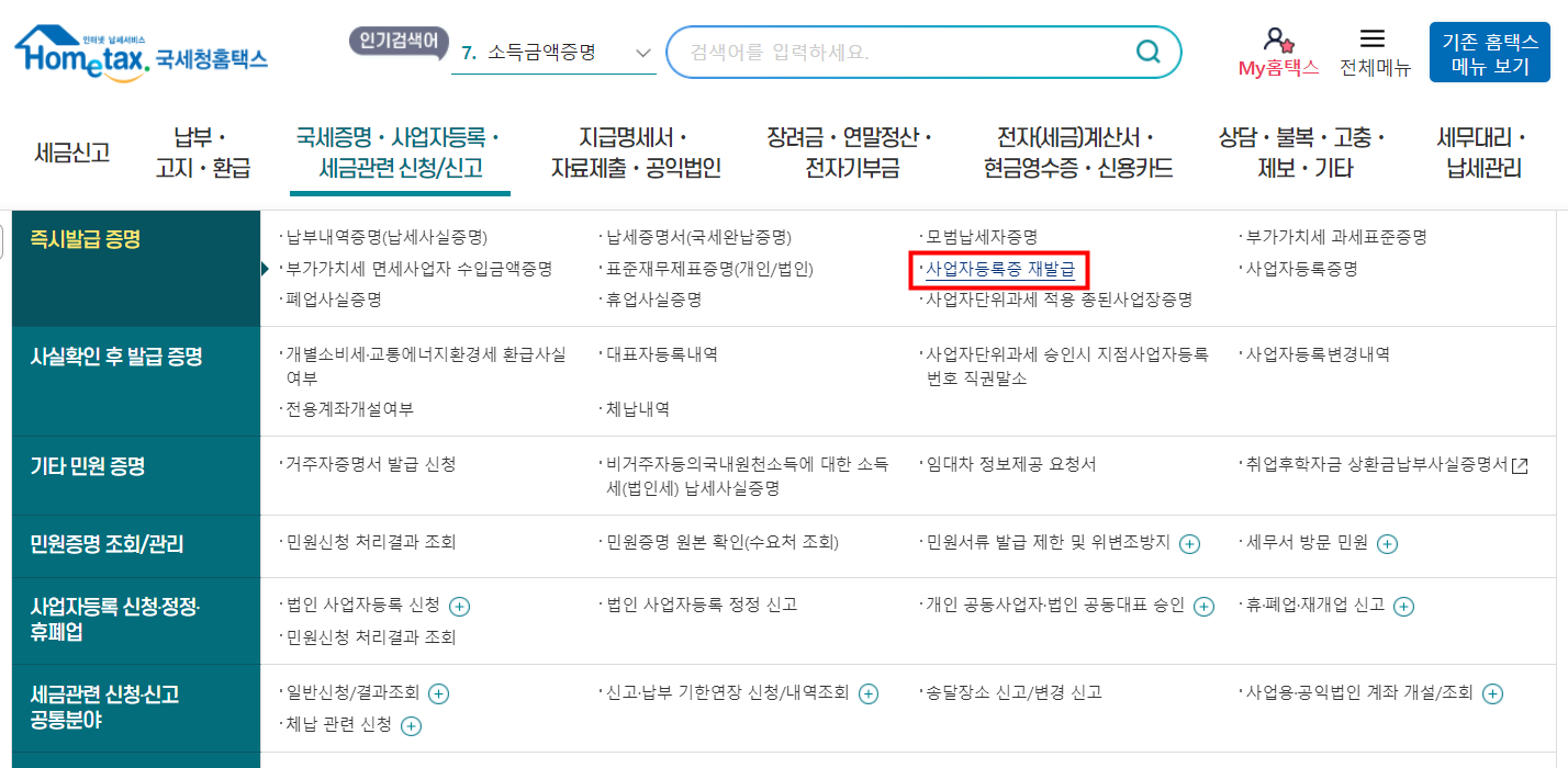 홈택스 인터넷으로 사업자등록증 발급/재발급/출력 하기