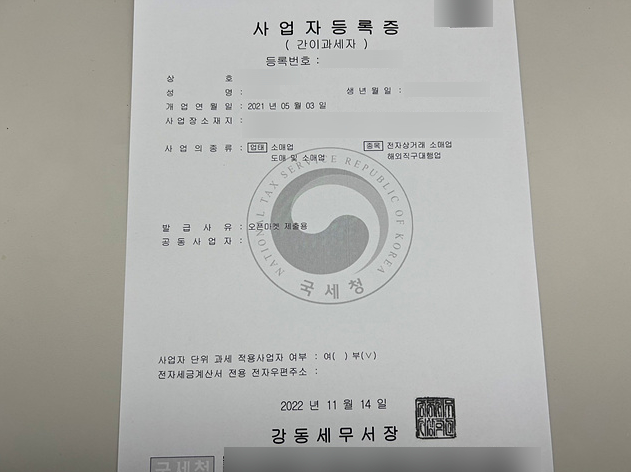 이제부터 본격적인 사업자등록증 발급을 위한 단계로 들어가봅니다.