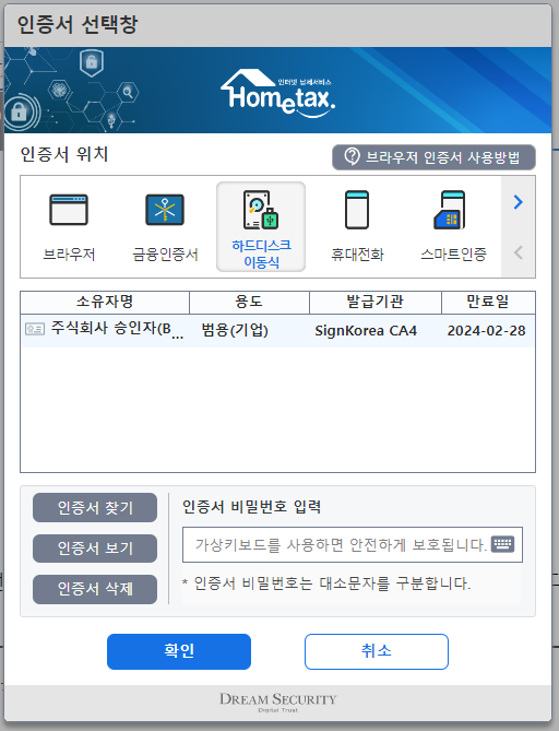 아무튼 저는 하드디스크에 설치된 공동인증서로 로그인을 했습니다.
