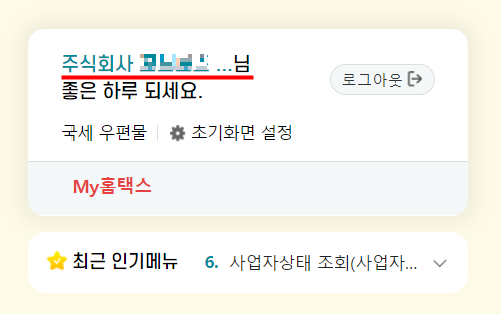 저 같은 경우는 법인으로 등록된 사업자등록증인데, 사실 법인사업자냐 개인사업자냐는 중요하지 않습니다. 왜냐하면 둘 다 사업자등록증을 출력/발급 받는 방법은 똑같기 때문입니다. 그럼 지금부터 정리해볼게요.