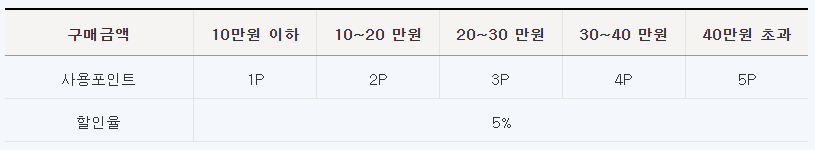 이 때 사용하는 금액 구간별로 포인트가 1~5P 사용되는데 여기서 파는 상품들이 생각보다 꽤 싸기 때문에 시중에서 쇼핑하는 것보다 훨씬 저렴하게 구매할 수 있다는 장점이 있습니다.